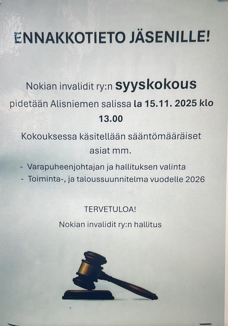 Nokian invalidien biljardivuoro keskiviikkoisin klo 13-15 Välikadulla